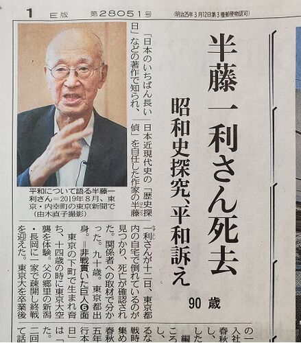 『日本のいちばん長い日』などの著作で知られている半藤一利さんが亡くなったと、朝のニュースで知った。 半藤さんの書籍は何冊か読んでいる。もちろん、『日本のいちばん長い日』の本も読んだし、それを原作とした映画も観た。 ブログにも何回か半藤さんの…