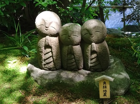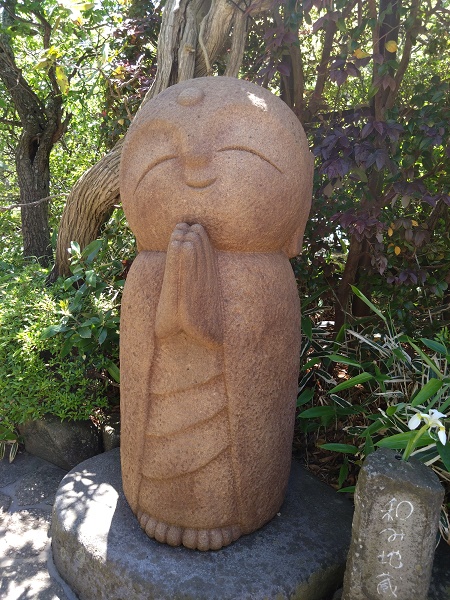 境内の新緑の中には、こんなかわいい地蔵様が・・・。