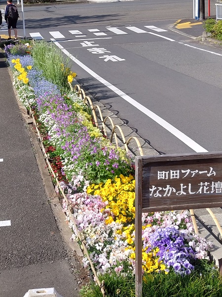 これは、町田市が「市民の手づくりによる花壇の草花が街を彩る企画」として、希望する市民や団体に、花の苗を提供して、それを植えた花壇の出来映えを審査する「花壇コンクール」に参加している花壇。