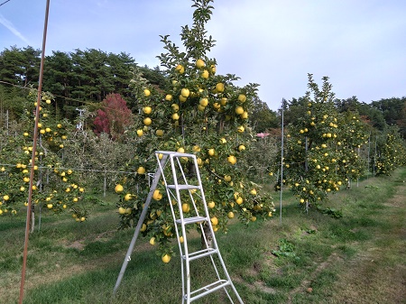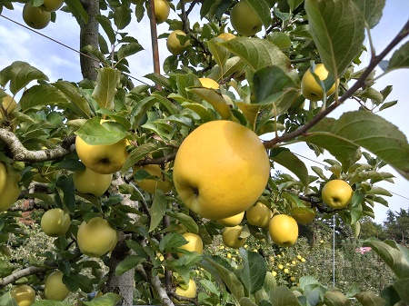 リンゴ畑でもぎたてのおいしいリンゴをいただいて。